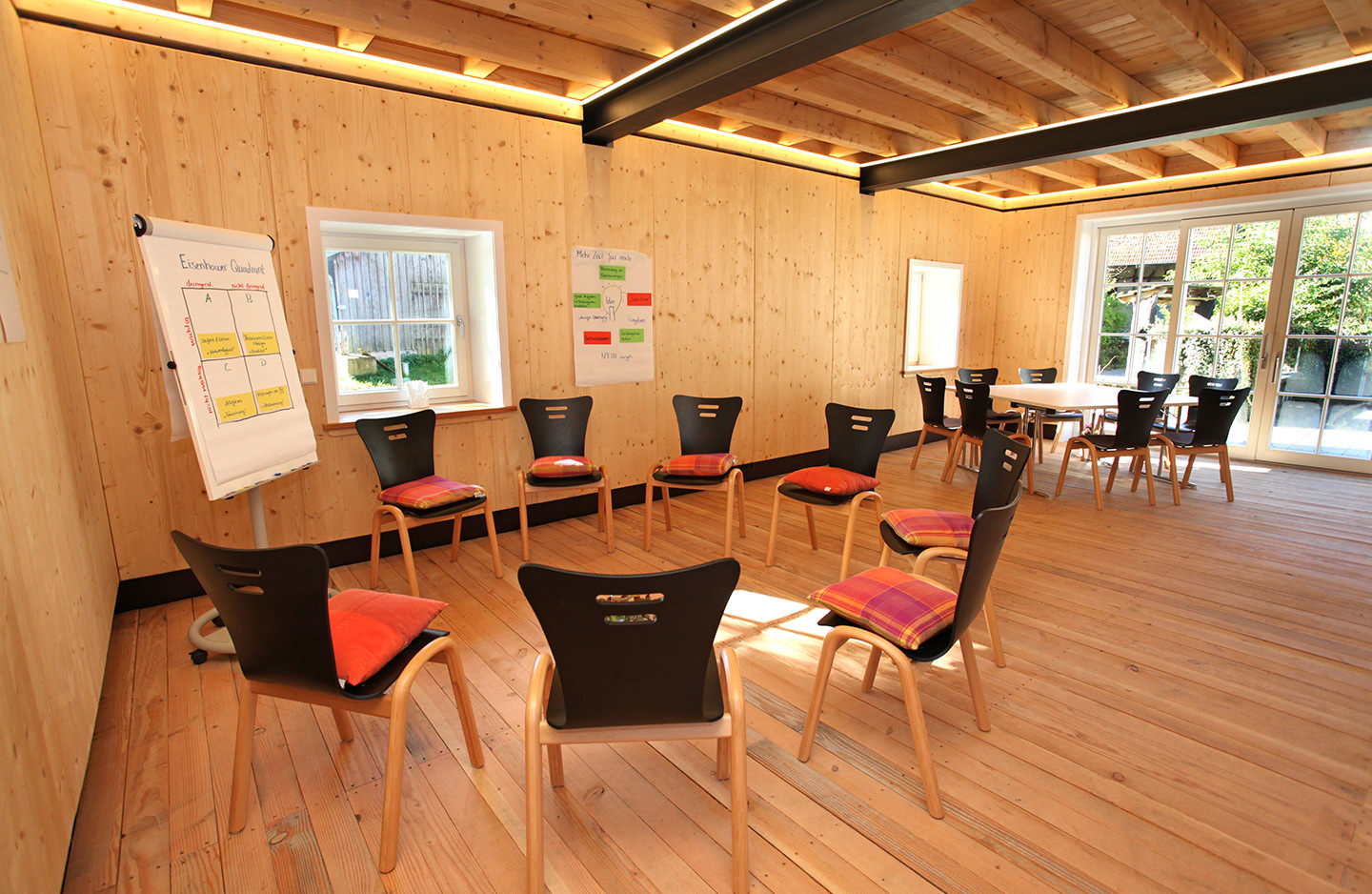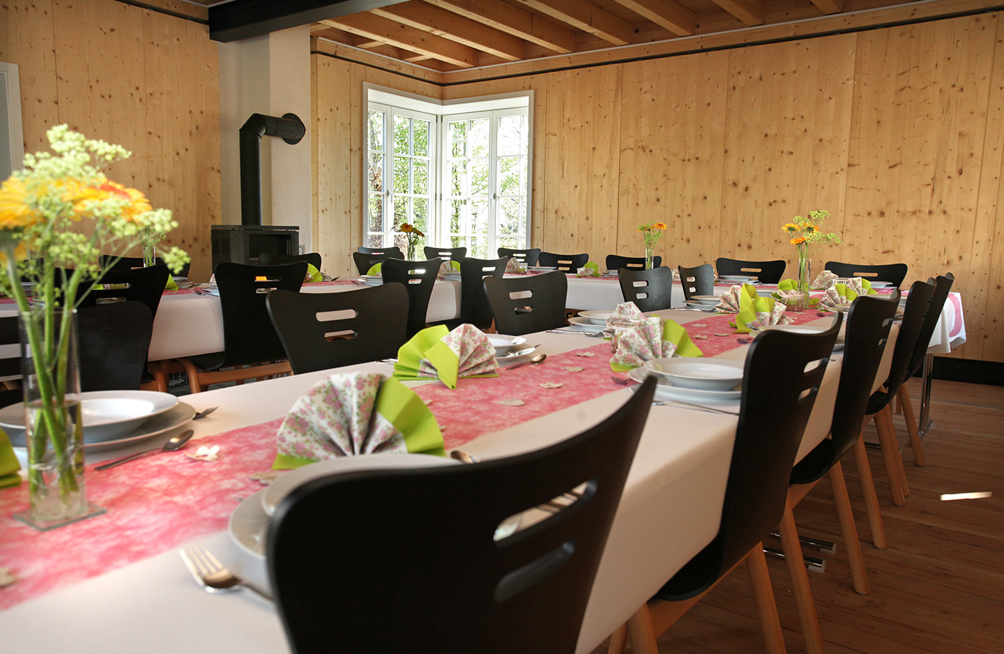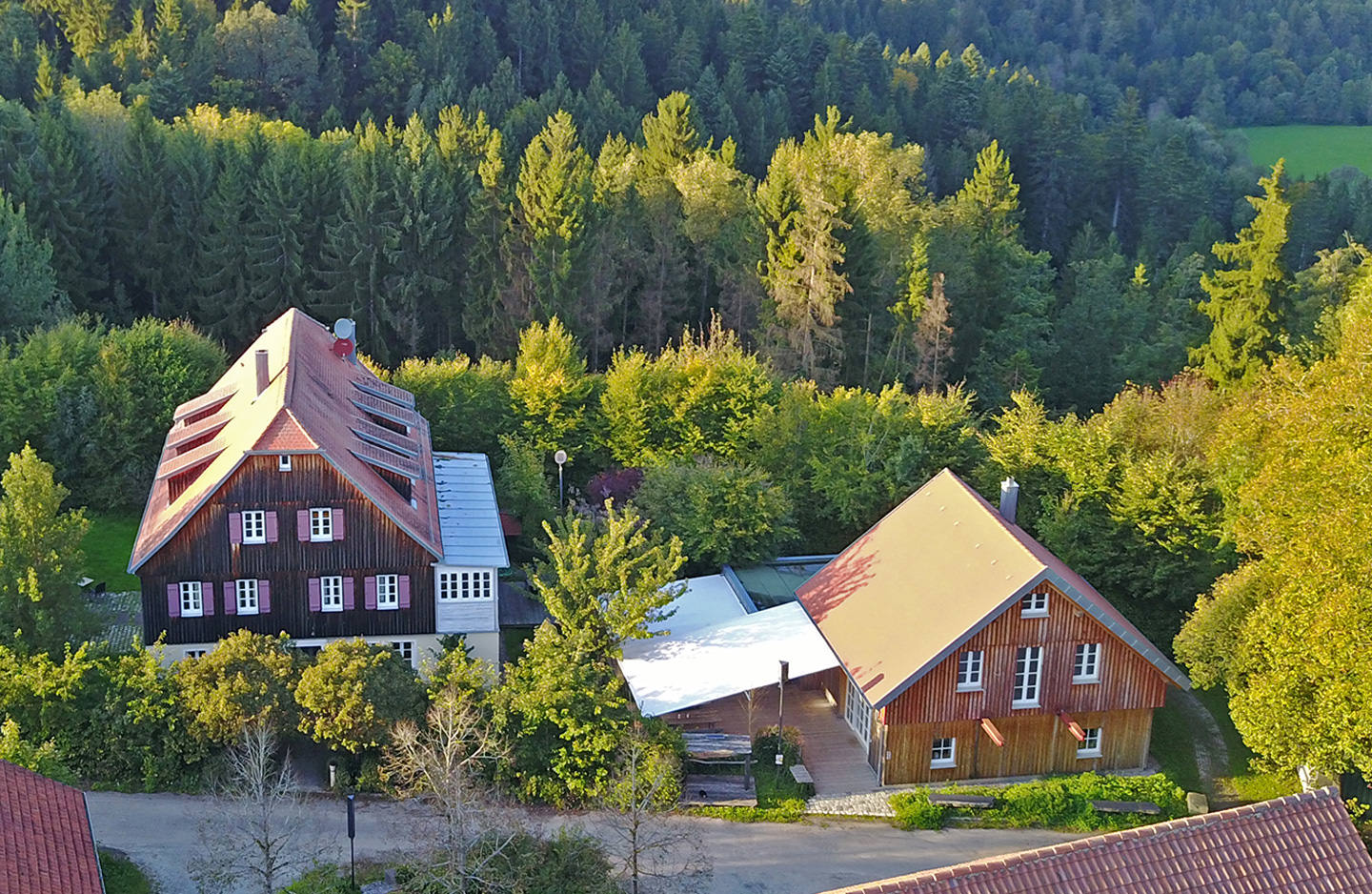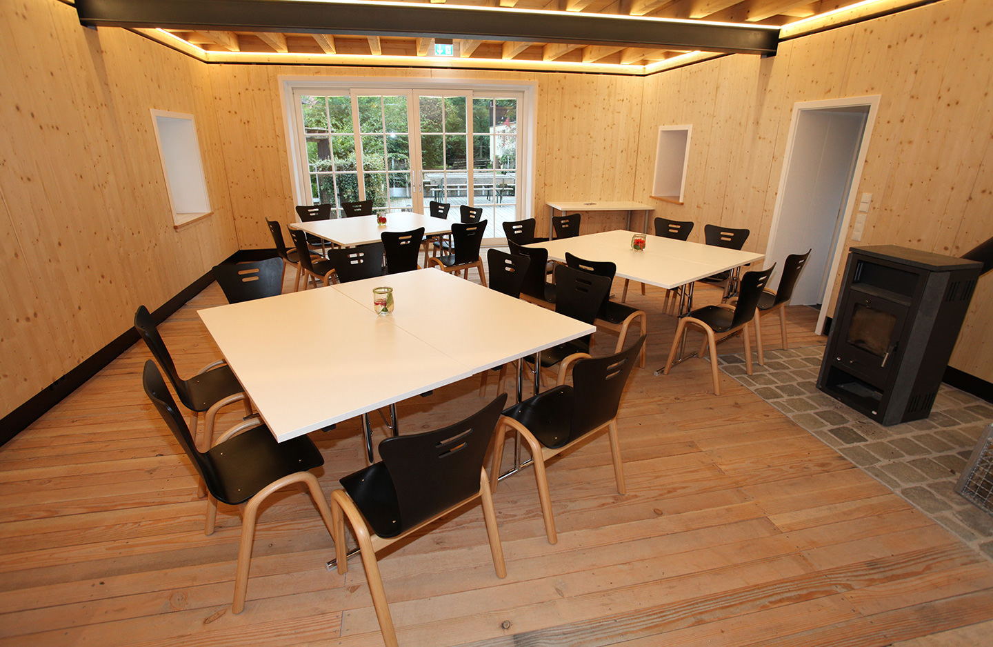 An adjacent building 'The Courtyard House' has a fully equipped communal kitchen with dishwasher, a spacious lounge with fireplace and a snug terrace, which can be additionally hired on request by our holiday guests. Here you can cook, eat, work, hold seminars/meetings, play, party and enjoy together.