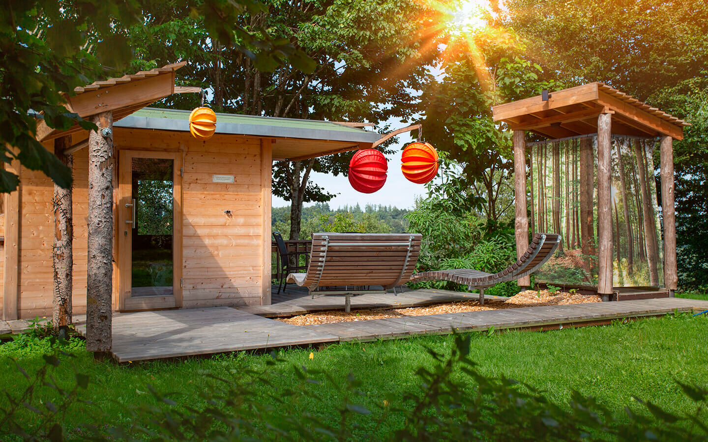 In our wonderful Gardensauna with a panoramic view over the valley, you can end the day relaxed in Weiler. The sauna can be booked for a fee by our holiday guests.